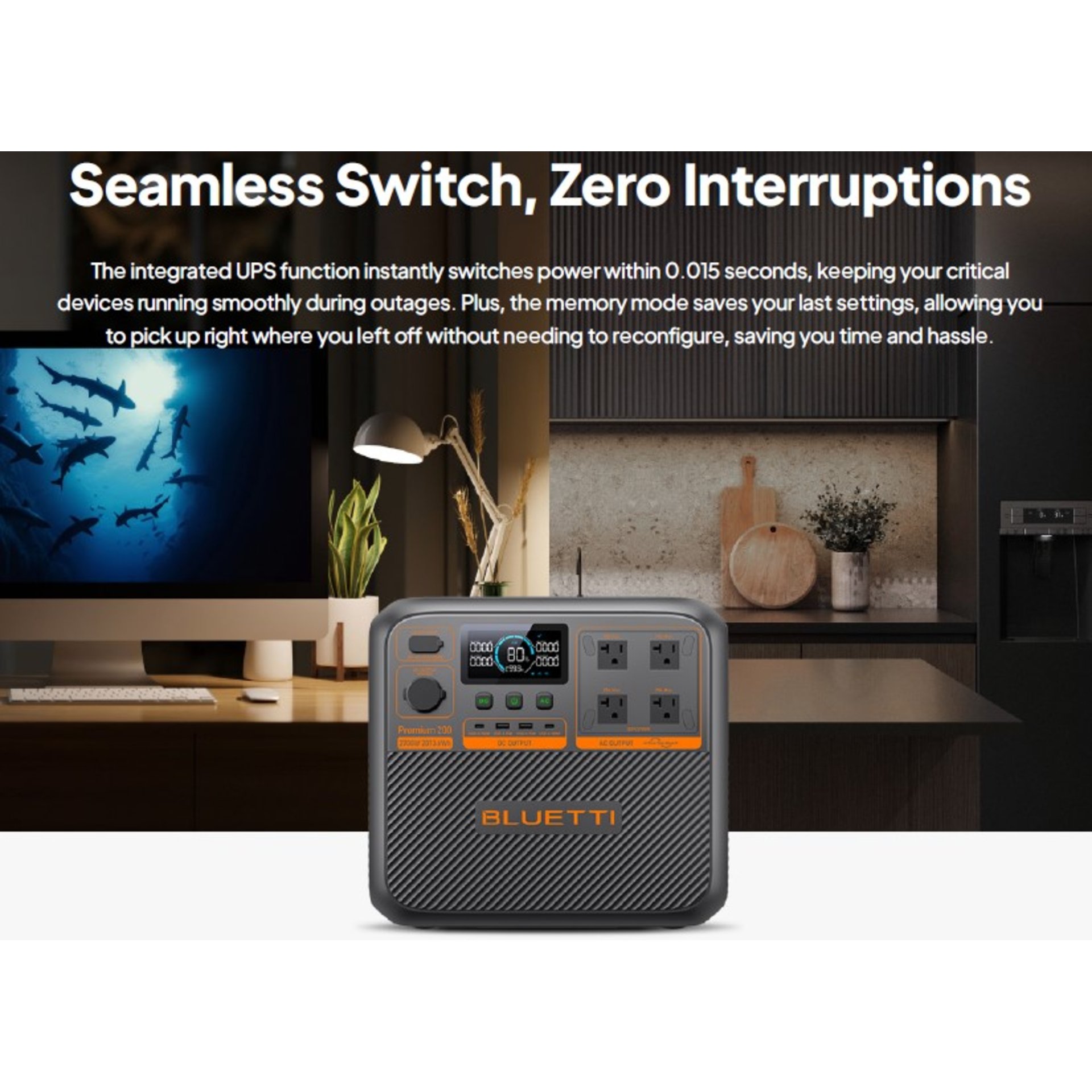 *High-Capacity Power: With 2,073.6Wh capacity and 2,700W output, the Premium 200 V2 delivers impressive power to keep devices fully charged all day long!