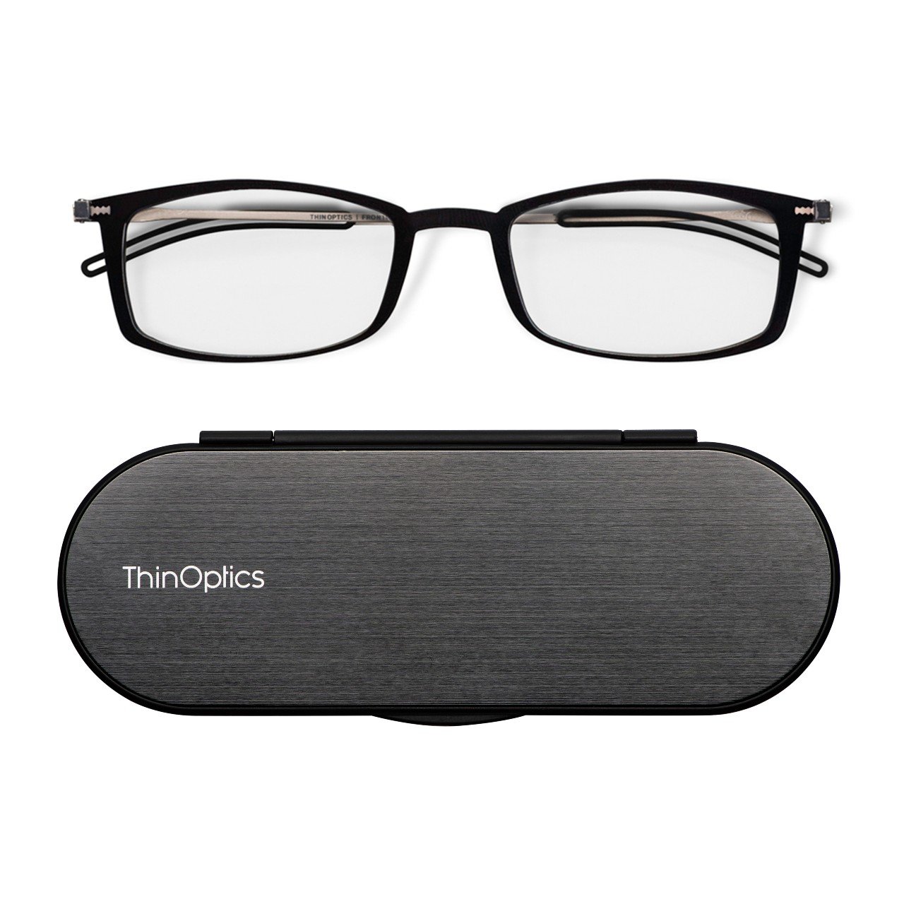 ThinOptics FrontPage Brooklyn Black Reading Glasses + Milano Case 1.0